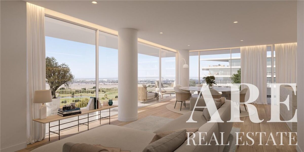 Apartamento en venta en Quarteira, Loulé, Algarve, Portugal, con 2 dormitorios y vista jardín. Propiedad residencial Premium. Este apartamento de una planta cuenta con un área interior de 119.47 m² y está orientado al sur. Construido en 2027, el apartamento ofrece un diseño moderno y eficiente con una calificación energética de A. La propiedad incluye balcones que suman un total de 23.39 m², proporcionando un espacio exterior adicional para disfrutar del clima del Algarve.