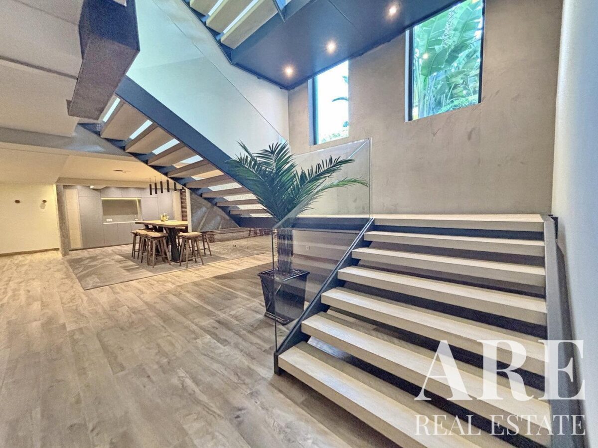 El garaje tiene capacidad para 4 coches y hay espacio adicional de almacenamiento. También hay estacionamiento exterior para 4 vehículos. Los muebles están disponibles para negociación con la adquisición de la propiedad. El precio de venta de esta villa es € 13 200 000.