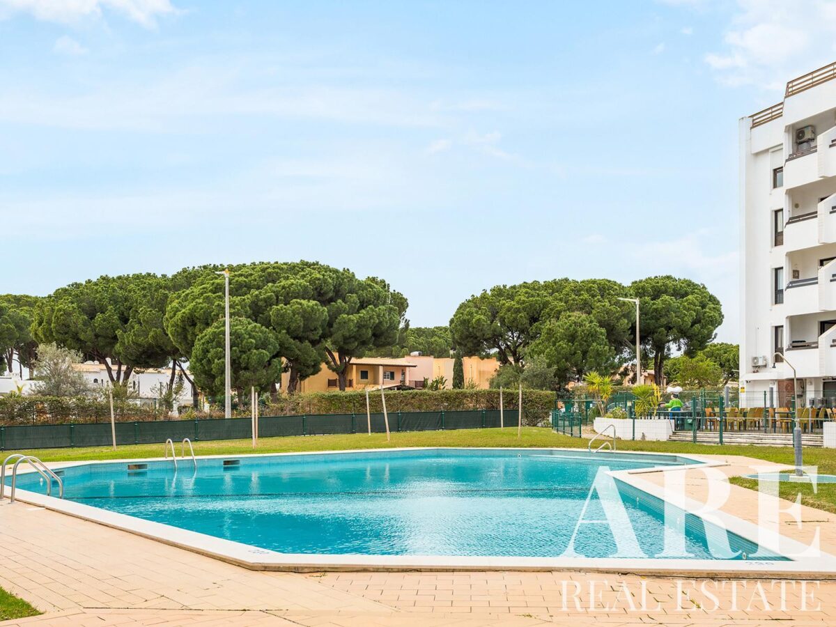 Appartement à vendre à Vilamoura, Quarteira, Algarve, Portugal, avec 2 chambres et vue piscine. Immeuble résidentiel haut de gamme.