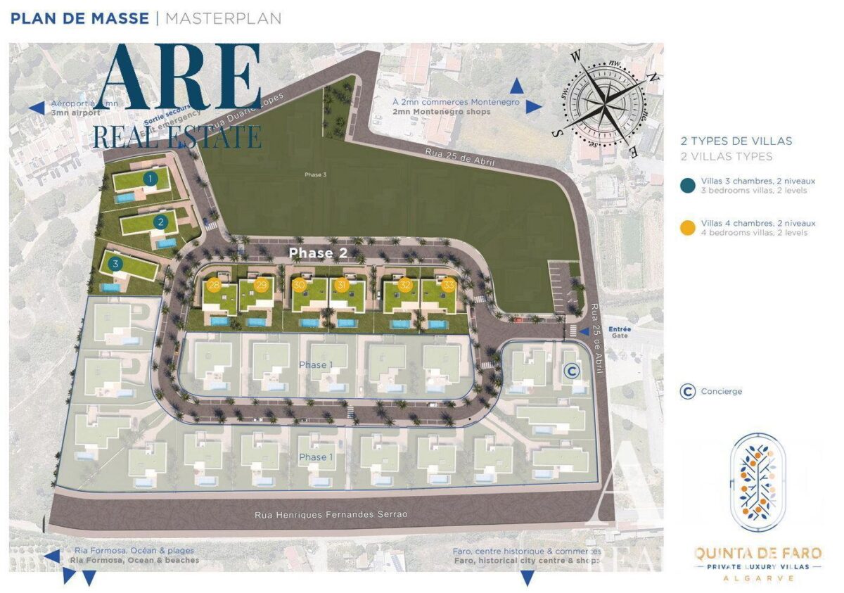 4-bedroom villa located in the prestigious Quinta de Faro Condominium. Situated in the Montenegro neighbourhood of Faro, Algarve, the villa is part of a luxury private development that spans over 5 hectares and features a collection of 37 high-end detached villas.