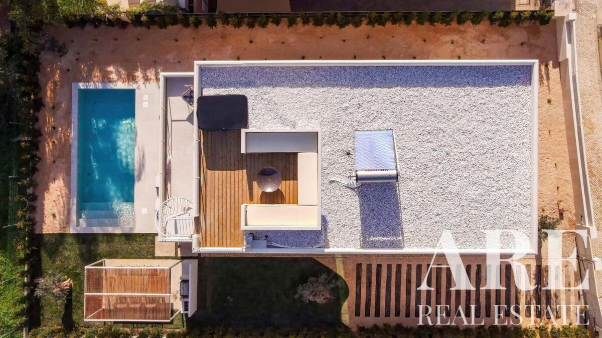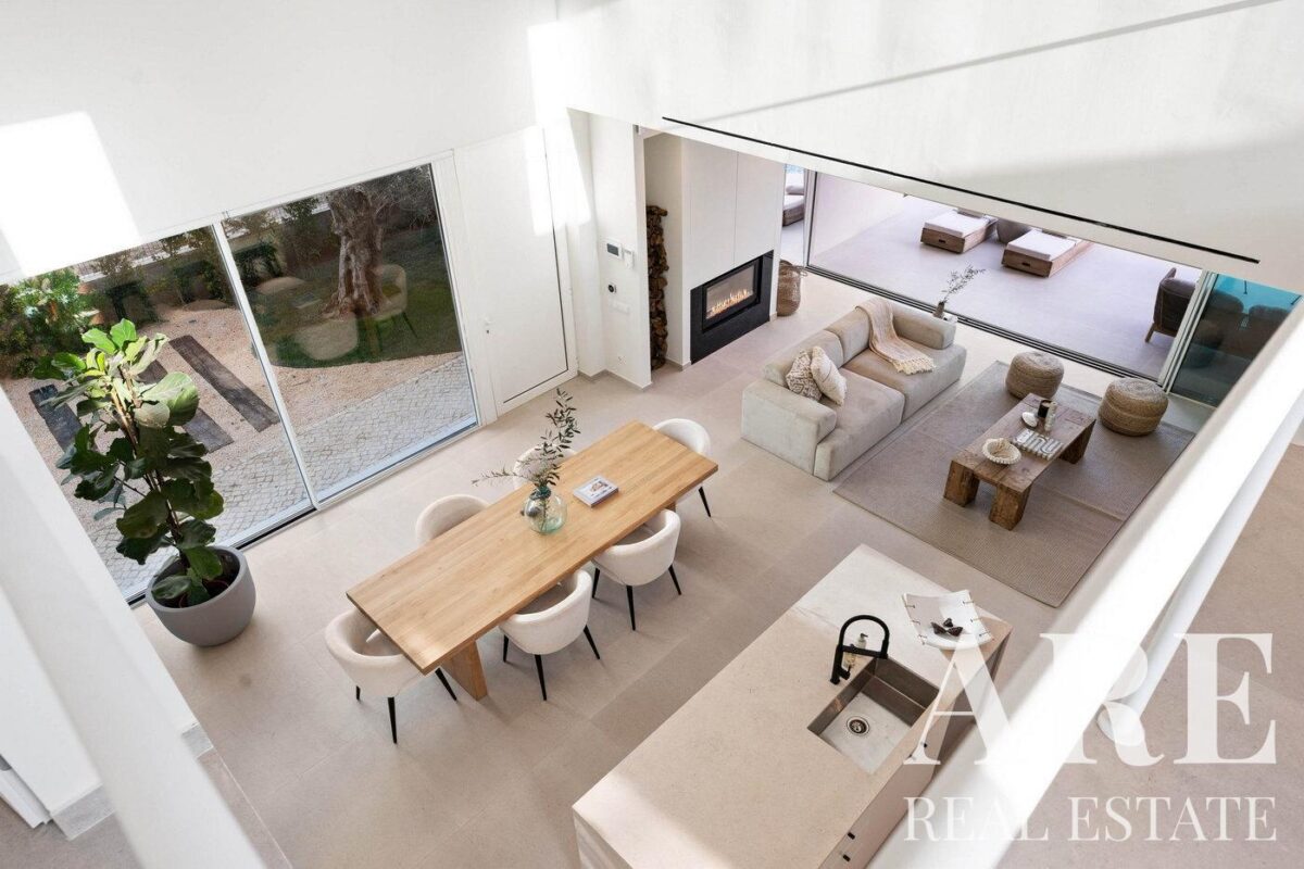 The property is distinguished by its clean architectural lines and strategic lighting setup, optimized to take full advantage of the sunny Portuguese climate for optimal year-round comfort.