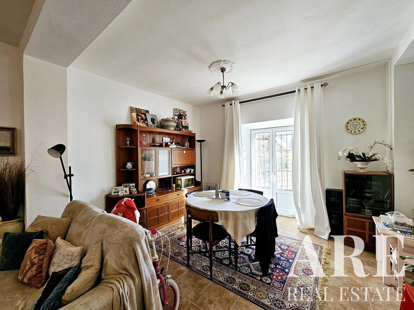 The property retains its rustic charm with original stone frames and a traditional fireplace. The extensive 2,050 square meters of fenced land includes a swimming pool, ample parking space, a water cistern, and a garage that offers potential conversion into additional living space or a separate annex.
