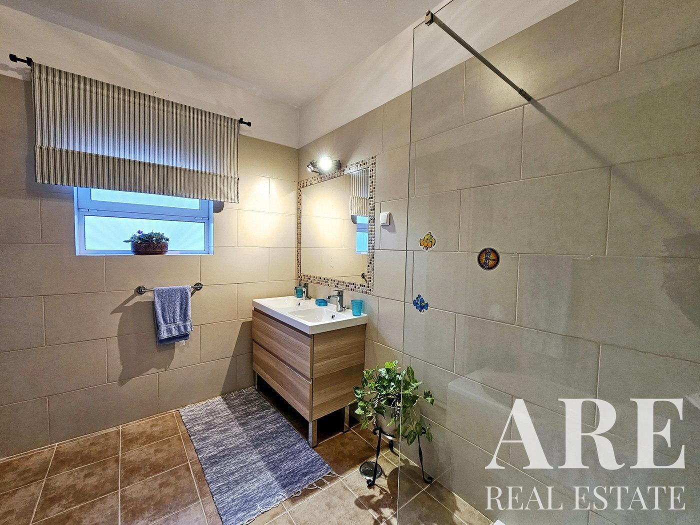 Significant renovations have been undertaken by the current owner, including a complete overhaul of the electrical and plumbing systems, as well as insulation of the ceiling to enhance energy efficiency. The bathrooms have been modernized to reflect contemporary comfort standards, and air conditioning along with double-glazed windows have been installed throughout the property.