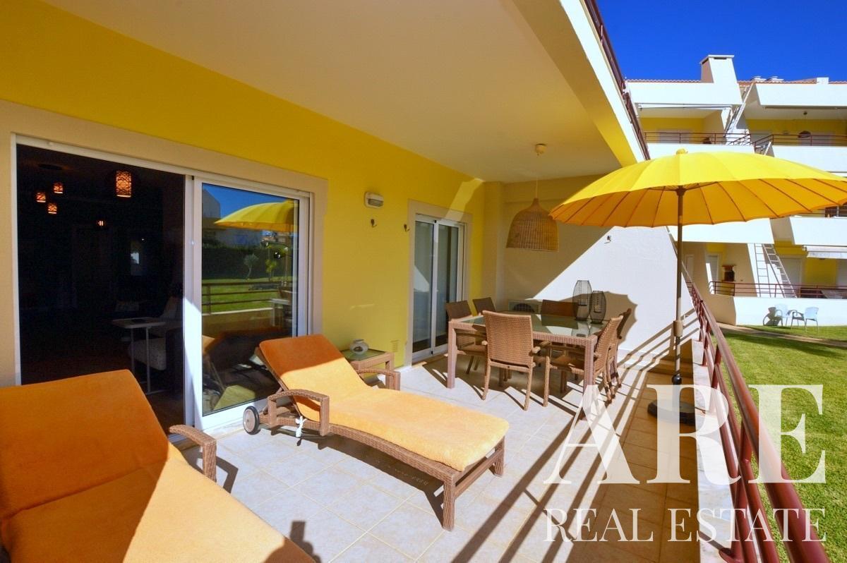 Apartamento T3 renovado no rés-do-chão, inserido num condomínio com jardim paisagístico e piscina, situado a uma distância a pé da praia da Falésia e da marina.